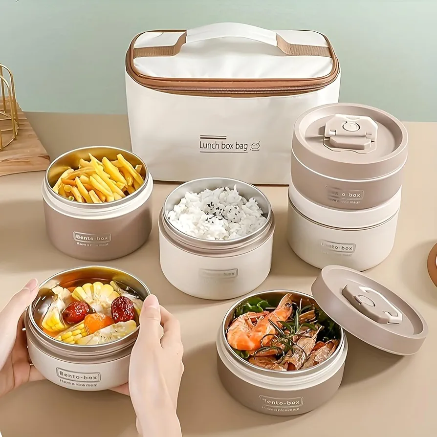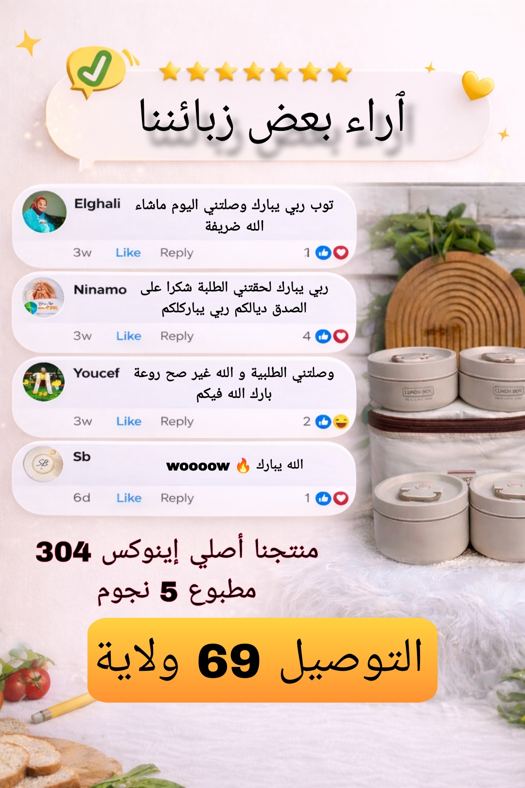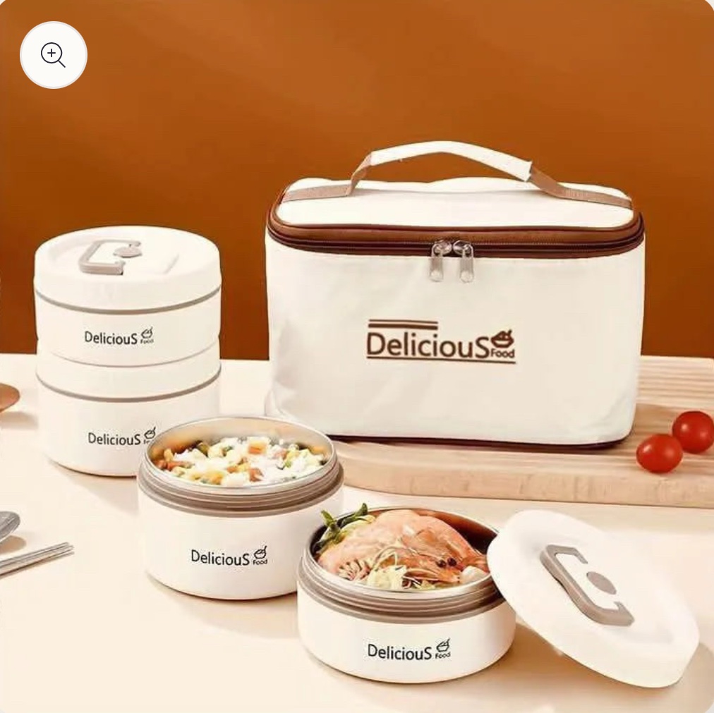 نقدّم لك حقيبة أكل حرارية فاخر – 4 قطع مع حقيبة عازلة للحرارة 🥗🍲
